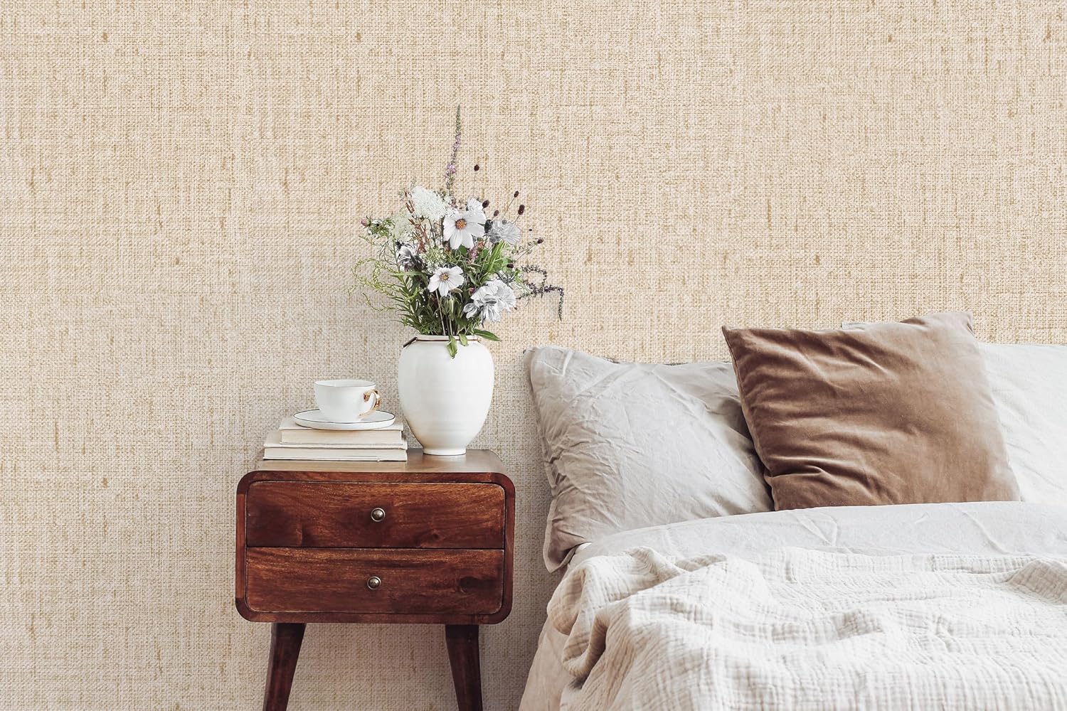 Transform any room in your home with this Beige Grasscloth Peel and Stick Wallpaper, whether you want to create a cozy and inviting atmosphere in your living room or add a touch of elegance to your bedroom. Update your space with this stylish and affordable wallpaper option today!
