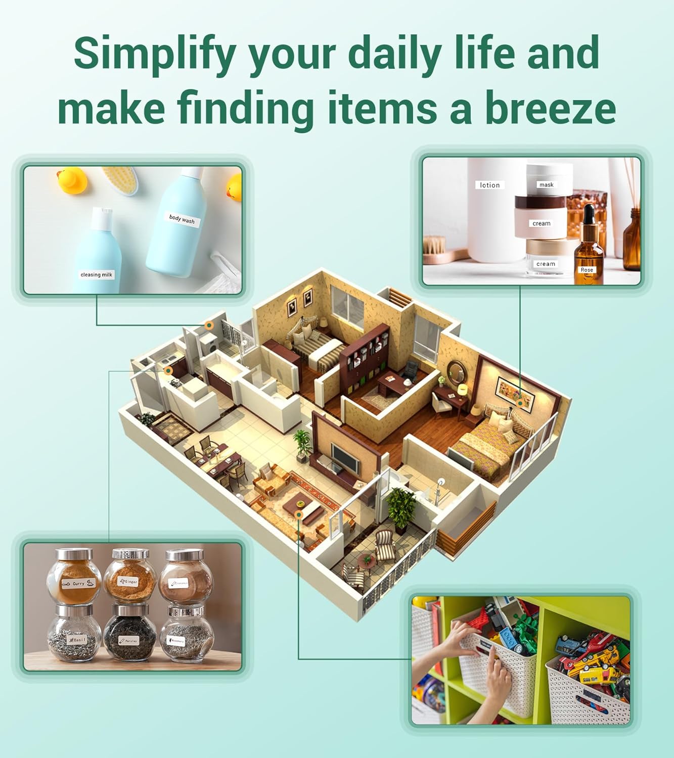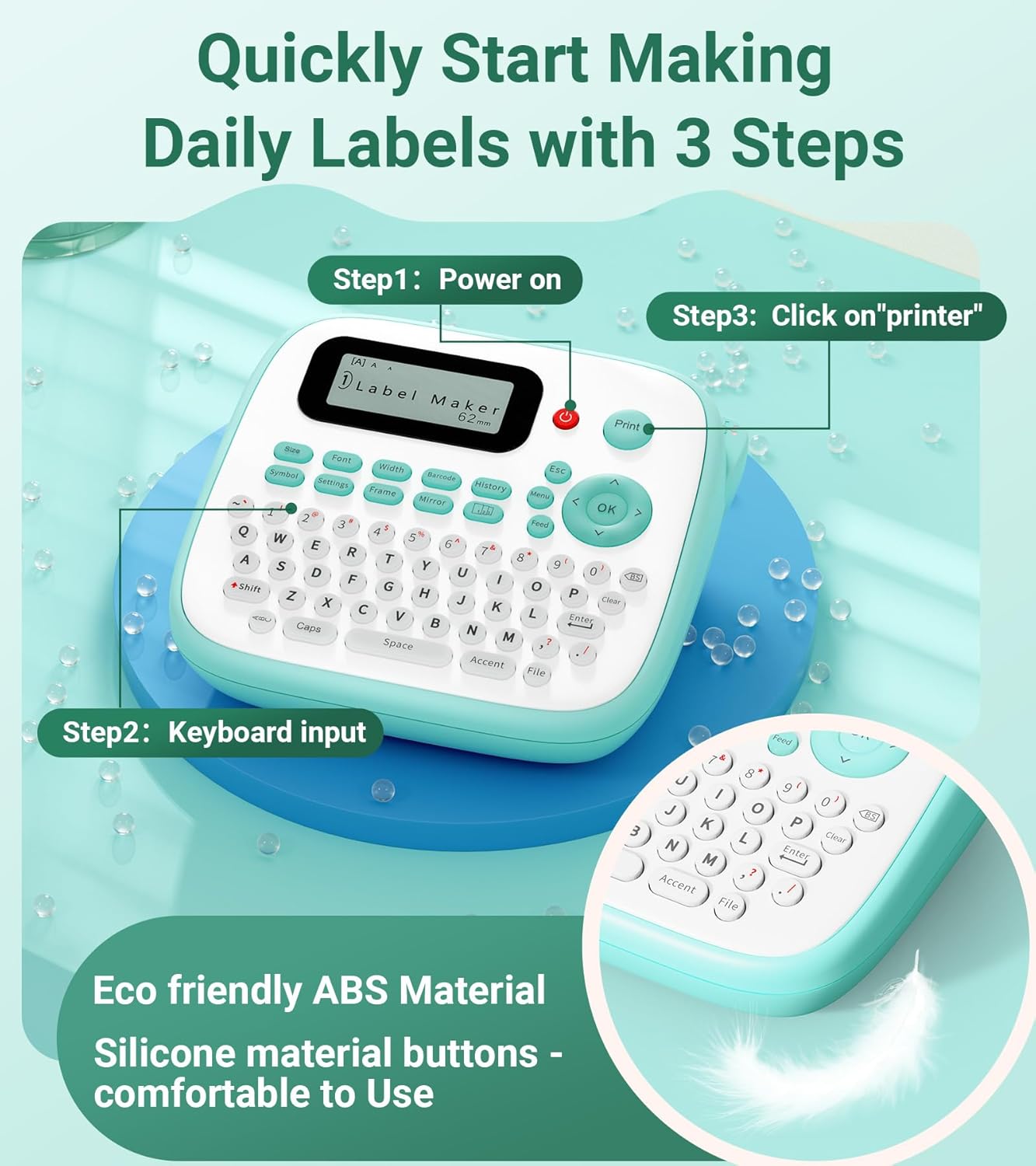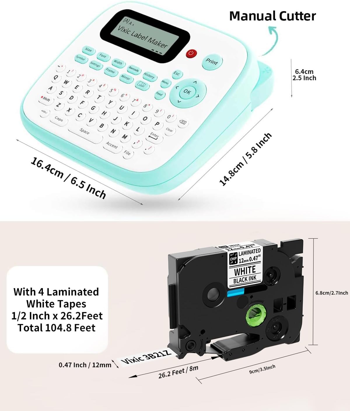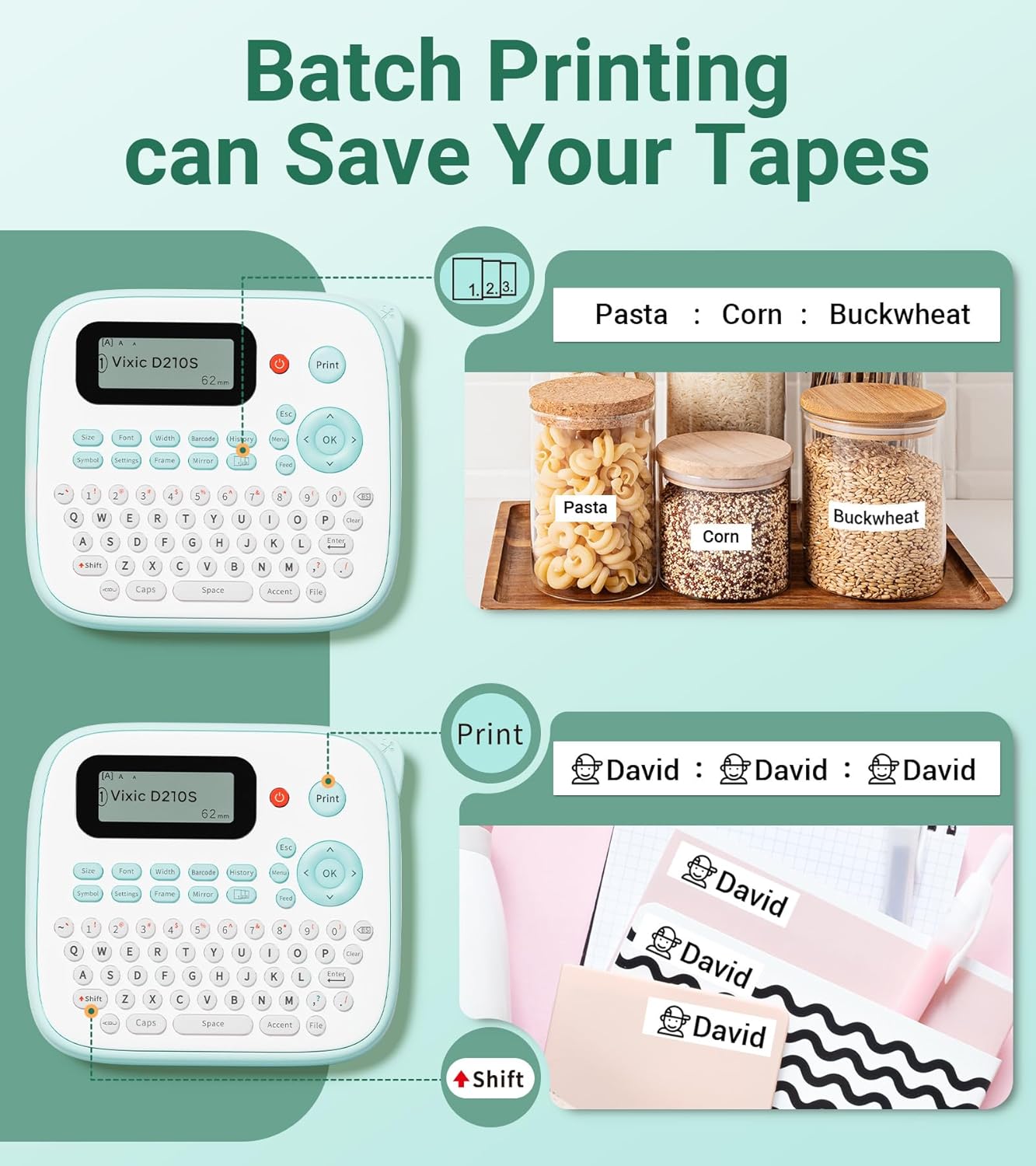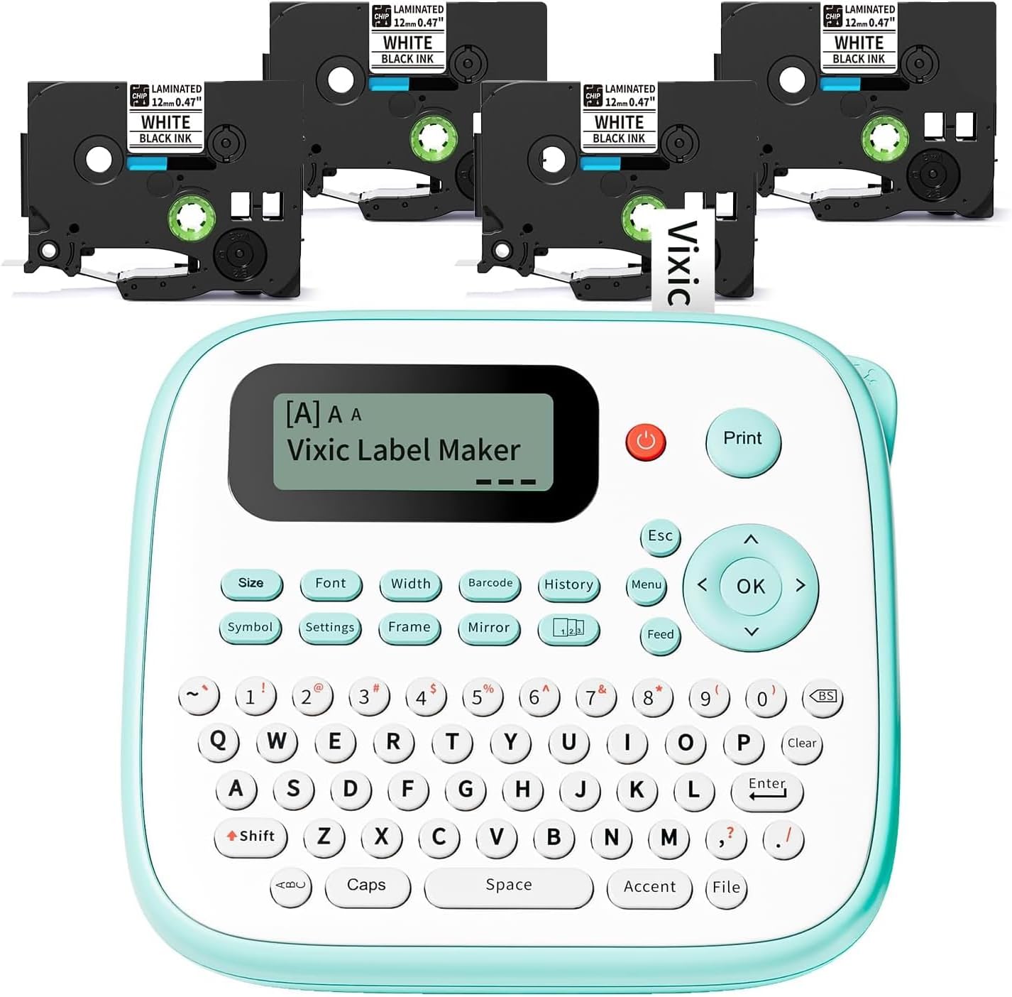 Label Maker, D210S Label Maker Machine with 4 Laminated Tapes, 12mm Labeler Label Maker with QWERTY Keyboard, Print Different Fonts Frame Barcode for Home Office School, Green